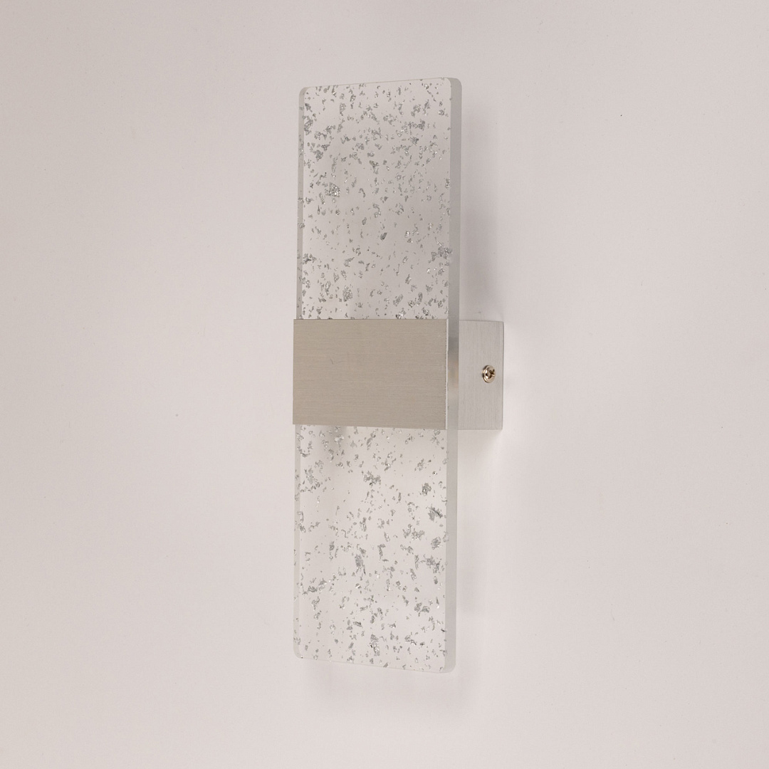 Серебряный цвет основания гармонично смотрится в интерьере, а технологичные штрихи на корпусе плафона создают дополнительный декоративный эффект. Полупрозрачный акрил с оригинальным декором мягко рассеивает свет, внося в интерьер комфорт и уют. Многорежимность с изменением цветовой температуры от 3000К до 6500К является элементом светодизайна и позволяет подобрать комфортную температуру света через настенный выключатель. Качественные светодиоды и корпус из сплава алюминия обеспечивают яркое освещение и долгий срок службы. Таким образом, настенное бра сочетает в себе элегантность и функциональность. Светодиодные источники света экономичны и безопасны.