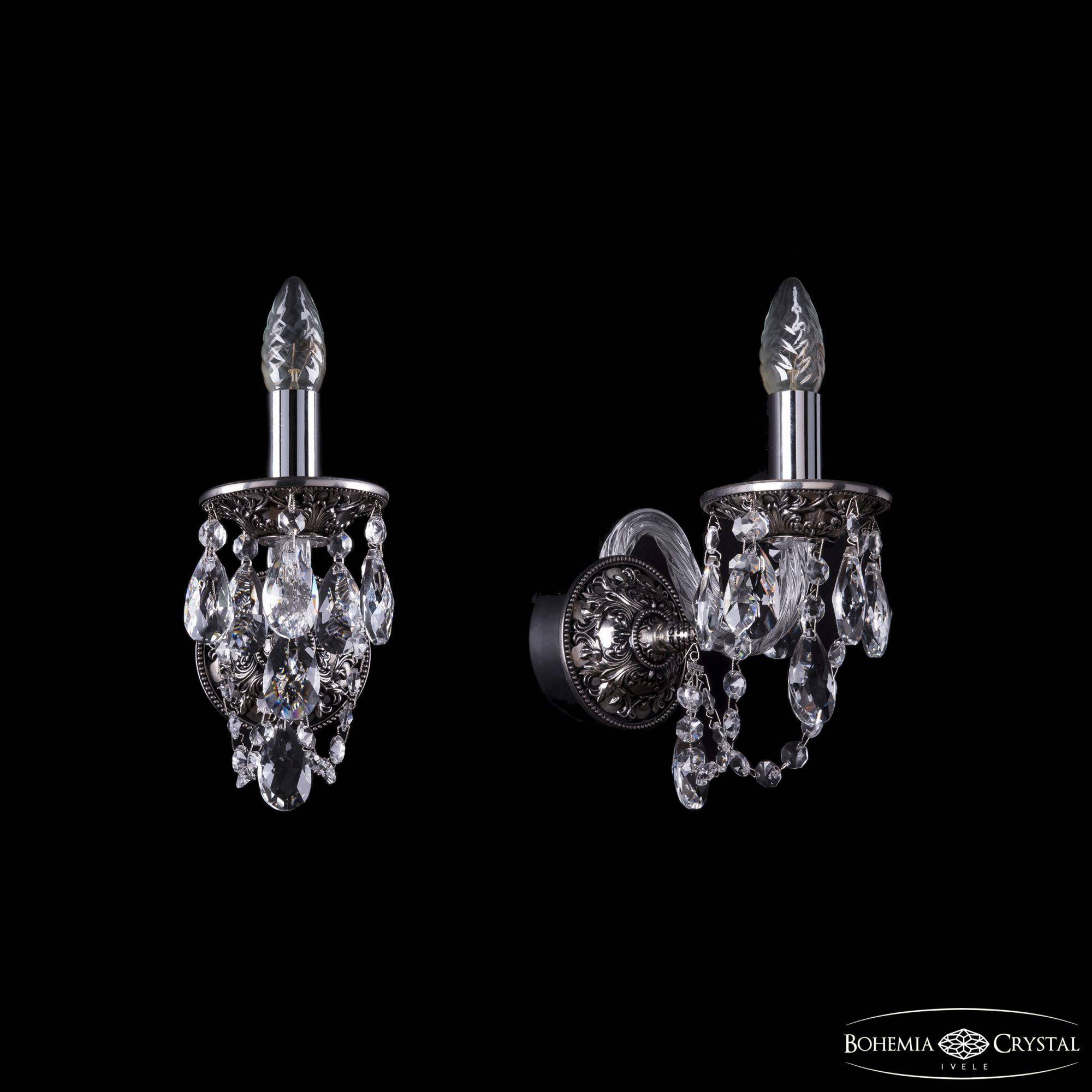 Чешское хрустальное бра Bohemia IVELE Crystal 1610/1/NB подойдет для помещений площадью от 2 до 4 квадратных метров. Арматура выполнена из высококачественного металла с нанесением гальванического покрытия. Цвет арматуры - никель черненый. Также данное бра доступно в цветах золото беленое, золото черненое, золото. Рожок и декоративные элементы выполнены из высококачественного хрусталя с высокими отражающими и светопреломляющими характеристиками. Форма хрустальных подвесок - классическая.  Цвет хрусталя - прозрачный. По желанию люстра может быть укомплектована абажурами. В настенном светильнике Bohemia Ivele Crystal используется стандартный патрон Е14, в который можно устанавливать как обычные лампы накаливания, так и светодиодные лампы. Отличным дополнением к хрустальному настенному светильнику в Вашем интерьере будут хрустальные люстры, подвесы, торшеры и настольные лампы Bohemia Ivele Crystal. Мы осуществляем доставку светильников во все регионы Российской Федерации.