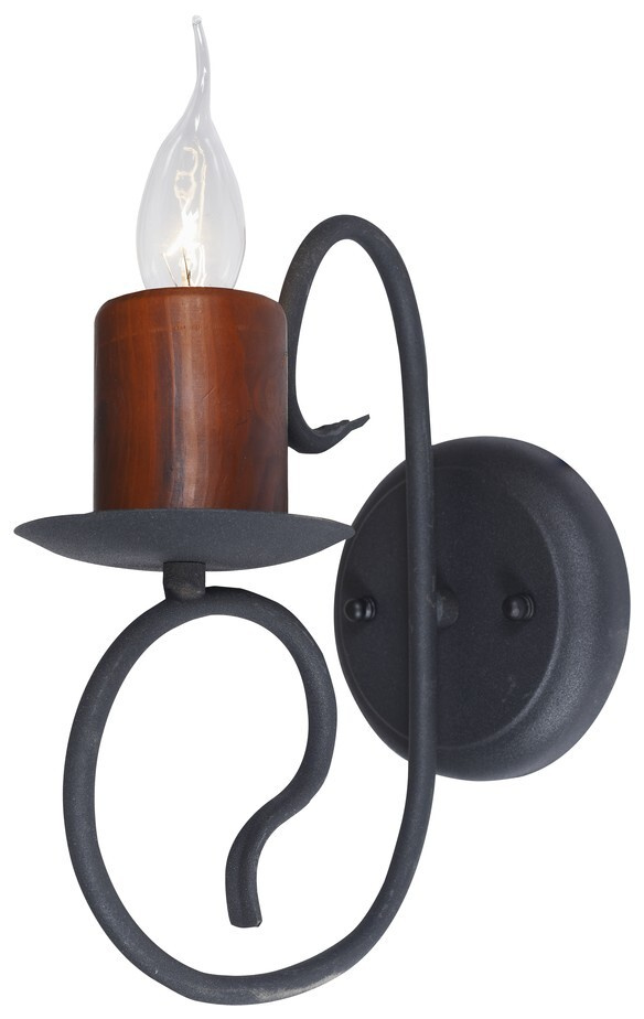 Настенный светильник 590-701-01 итальянского производителя Velante из коллекции 590 исполнен в стиле кантри. Арматура светильника выполнена из металла и дерева цветов дуб и черный. Поверхность арматуры матовая. Плафон отсутствует. Осветительный прибор рассчитан на освещение пространства площадью 2 кв. м. Тип цоколя используемых ламп E14. Производитель рекомендует использовать лампы мощностью не более 40 Вт. Суммарная мощность светильника составляет 40 Вт. Лампочки в комплект не входят. Защита от попадания влаги и пыли внутрь изделия не предусмотрена. Рекомендуем к применению в гостиной, кабинете, спальне.