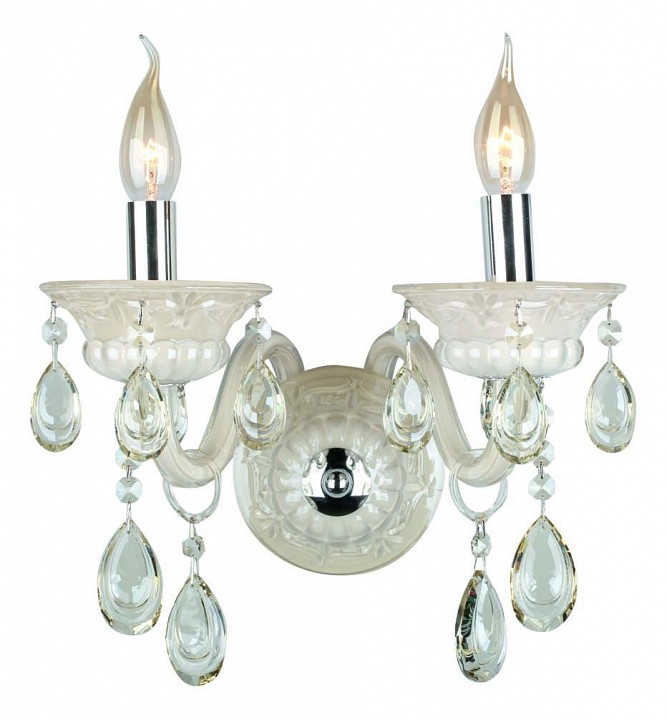 металла кремового цвета. Поверхность арматуры глянцевая и рельефная. Плафон отсутствует. Осветительный прибор рассчитан на освещение пространства площадью 4 кв. м. Тип цоколя используемых ламп E14. Производитель рекомендует использовать лампы мощностью не более 40 Вт. Суммарная мощность светильника составляет 80 Вт. Лампочки в комплект не входят. Защита от попадания влаги и пыли внутрь изделия не предусмотрена. Рекомендуем к применению в гостиной, кабинете, спальне.