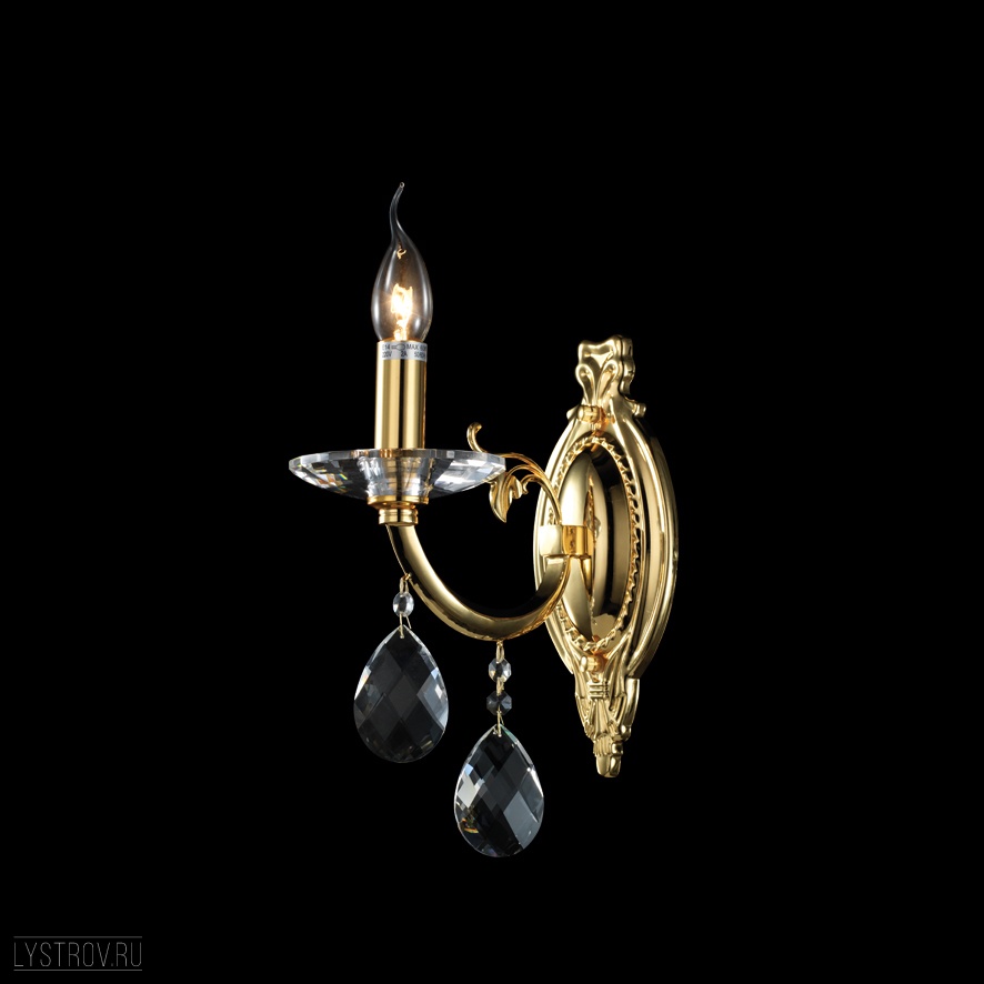металла золотого цвета. Поверхность арматуры глянцевая. Плафон отсутствует. Декоративные элементы выполнены из прозрачного хрусталя. Осветительный прибор рассчитан на освещение пространства площадью 3 кв. м. Тип цоколя используемых ламп E14. Производитель рекомендует использовать лампы мощностью не более 60 Вт. Суммарная мощность светильника составляет 60 Вт. Лампочки в комплект не входят. Защита от попадания влаги и пыли внутрь изделия не предусмотрена. Рекомендуем к применению в гостиной, кабинете, спальне.