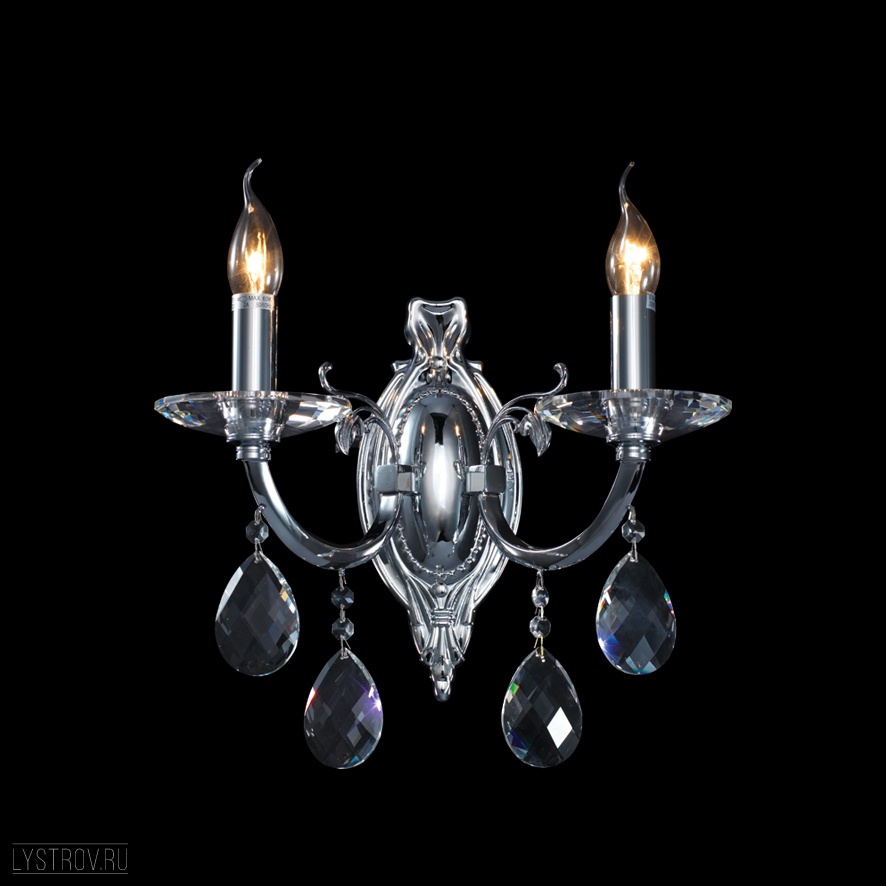 металла цвета хром. Поверхность арматуры глянцевая. Плафон отсутствует. Декоративные элементы выполнены из прозрачного хрусталя. Осветительный прибор рассчитан на освещение пространства площадью 6 кв. м. Тип цоколя используемых ламп E14. Производитель рекомендует использовать лампы мощностью не более 60 Вт. Суммарная мощность светильника составляет 120 Вт. Лампочки в комплект не входят. Защита от попадания влаги и пыли внутрь изделия не предусмотрена. Рекомендуем к применению в гостиной, кабинете, спальне.
