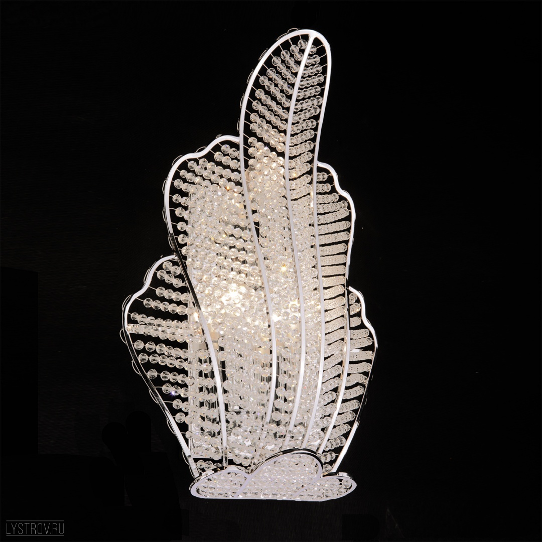 металла цвета хром. Поверхность арматуры глянцевая. Плафон изготовлен из хрусталя прозрачного цвета. с глянцевой поверхностью. Осветительный прибор рассчитан на освещение пространства площадью 9 кв. м. Тип цоколя используемых ламп E14. Производитель рекомендует использовать лампы мощностью не более 60 Вт. Суммарная мощность светильника составляет 180 Вт. Лампочки в комплект не входят. Защита от попадания влаги и пыли внутрь изделия не предусмотрена. Рекомендуем к применению в гостиной, кабинете, прихожей, спальне.
