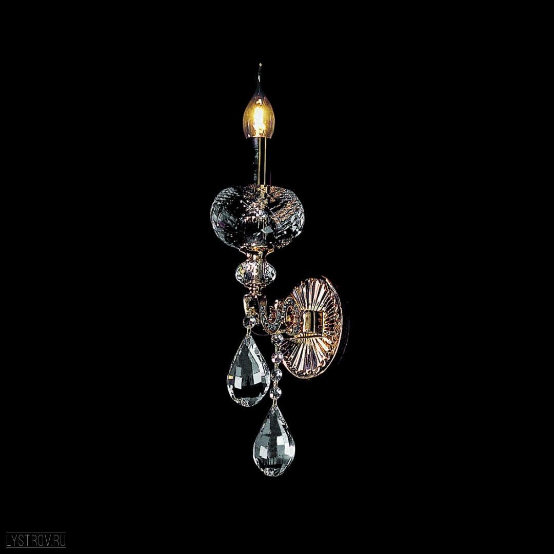 металла и стекла золотого и прозрачного цветов. Поверхность арматуры глянцевая и рельефная. Плафон отсутствует. Декоративные элементы выполнены из прозрачного хрусталя. Осветительный прибор рассчитан на освещение пространства площадью 3 кв. м. Тип цоколя используемых ламп E14. Производитель рекомендует использовать лампы мощностью не более 60 Вт. Суммарная мощность светильника составляет 60 Вт. Лампочки в комплект не входят. Защита от попадания влаги и пыли внутрь изделия не предусмотрена. Рекомендуем к применению в гостиной, кабинете, спальне.