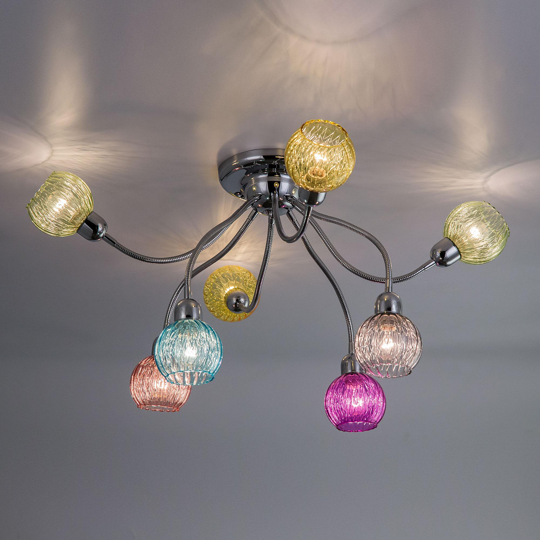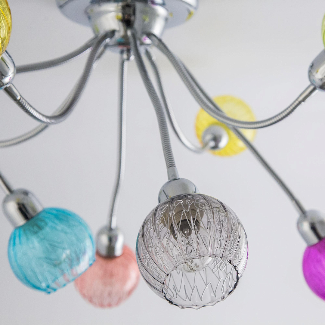 Потолочная люстра для детской CL604181 датского производителя CITILUX из коллекции Попурри выполнена в стиле для детской. Арматура светильника выполнена из металла цвета хром. Поверхность арматуры глянцевая. Плафон изготовлен из стекла многоцветной окраски, имеет сферическую форму и рельефную поверхность. Направлен в любую сторону. Осветительный прибор рассчитан на освещение пространства площадью 24 кв. м. Тип цоколя используемых ламп E14. Производитель рекомендует использовать лампы мощностью не более 60 Вт. Суммарная мощность светильника составляет 480 Вт. Лампочки входят в комплект. Защита от попадания влаги и пыли внутрь изделия не предусмотрена. Рекомендуем к применению в гостиной, кабинете, спальне.