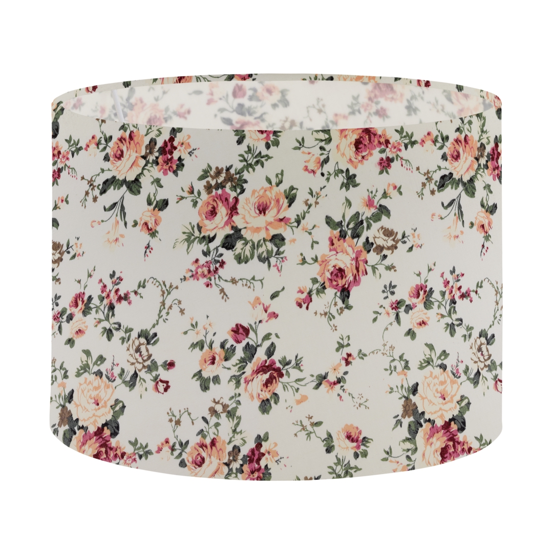 Абажур, Ø250, H180, текстиль, белый с цветочным декором