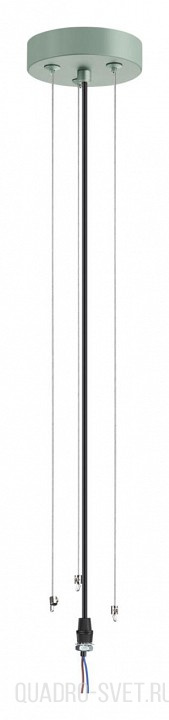 Тросы подвесного крепления для модели MACARON выполнены из металла. Потолочная металлическая чаша выкрашена в цвет корпуса светильника - светлый серо-зеленый. Питающий провод - черного цвета.