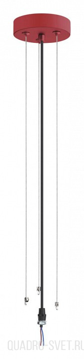 Тросы подвесного крепления для модели MACARON выполнены из металла. Потолочная металлическая чаша выкрашена в цвет корпуса светильника - насыщенный томатный. Питающий провод - черного цвета.