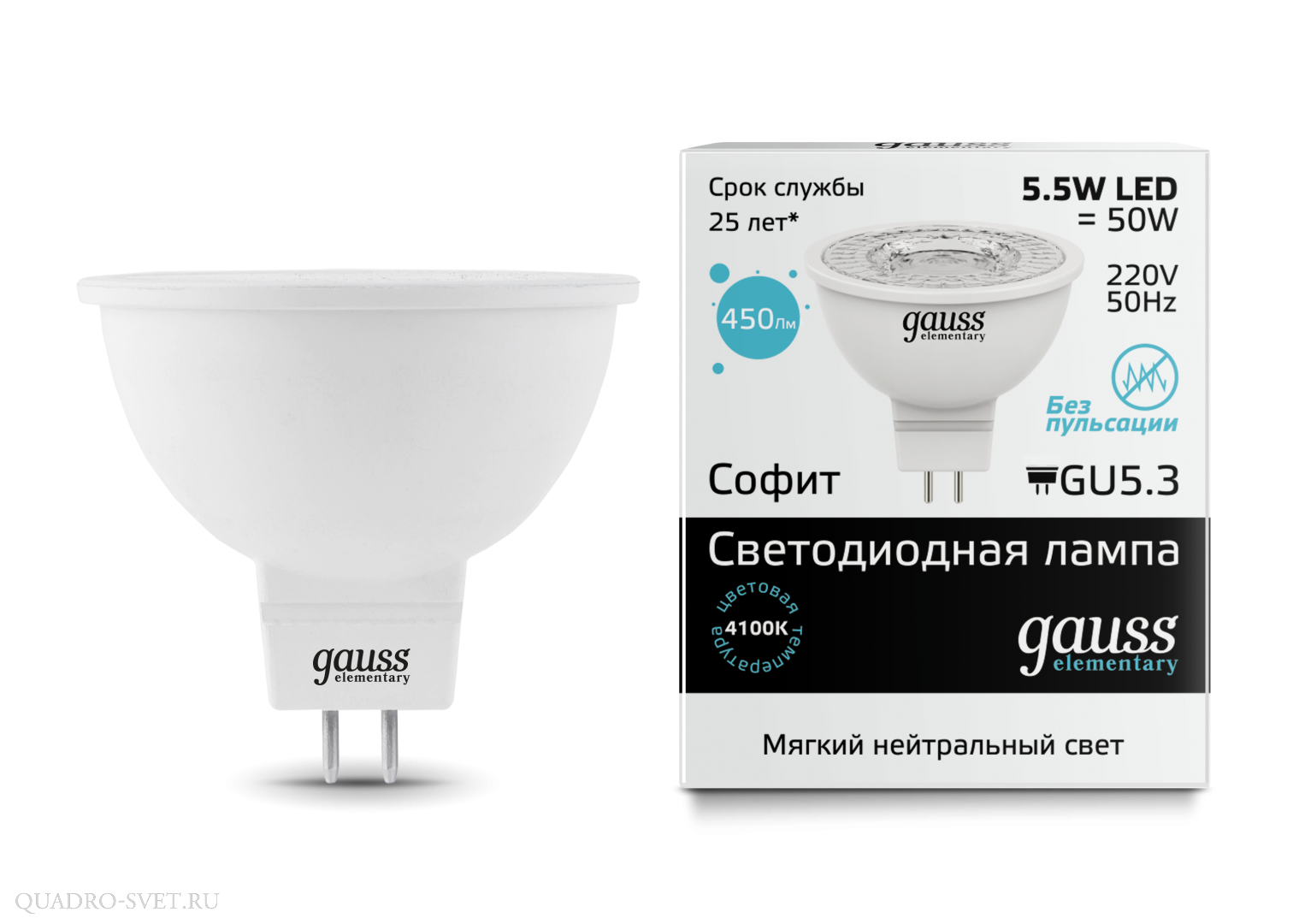 Оставить свой отзыв о товаре Лампа LED Gauss Софитная 5,5 Вт GU5.3 4100K 220В 16526