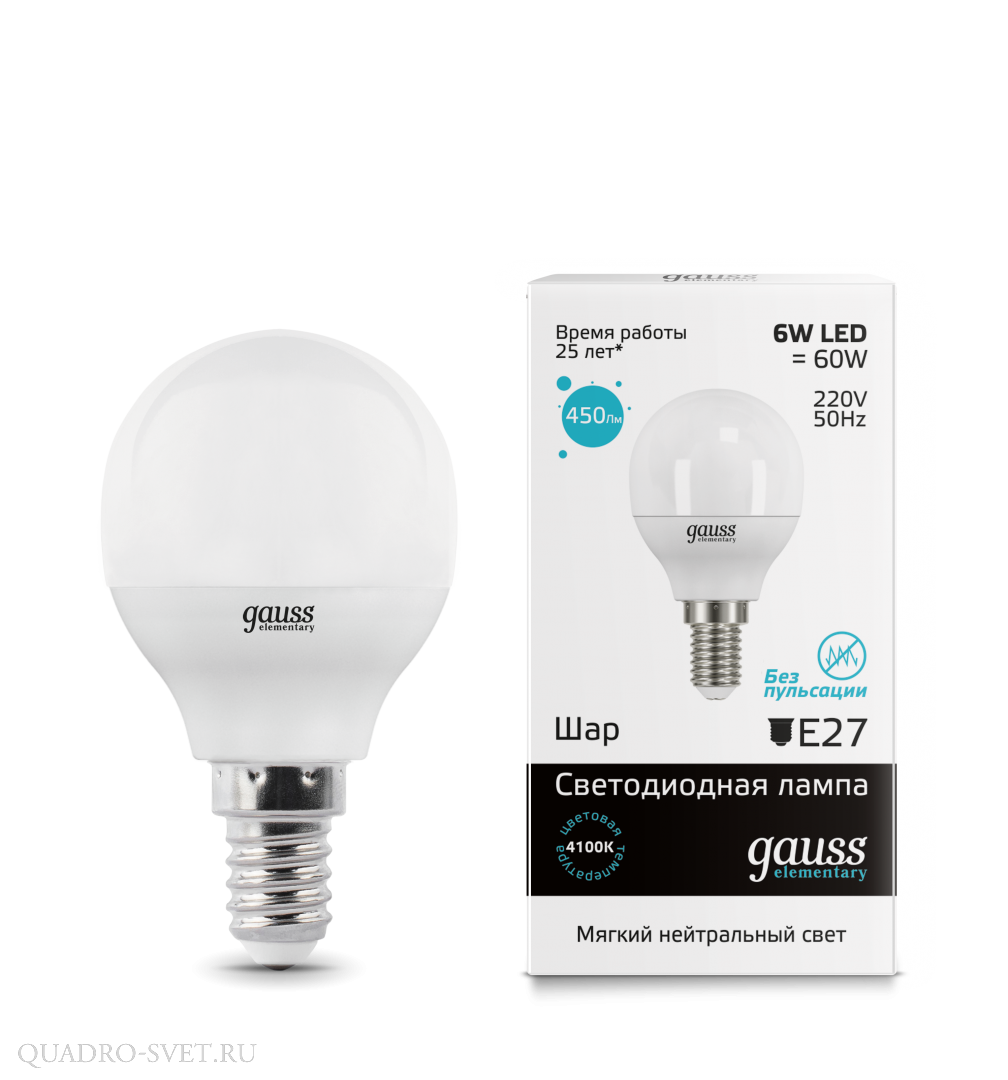 Оставить свой отзыв о товаре Лампа LED Gauss Шар 6 Вт E14 4100K 220В 53126