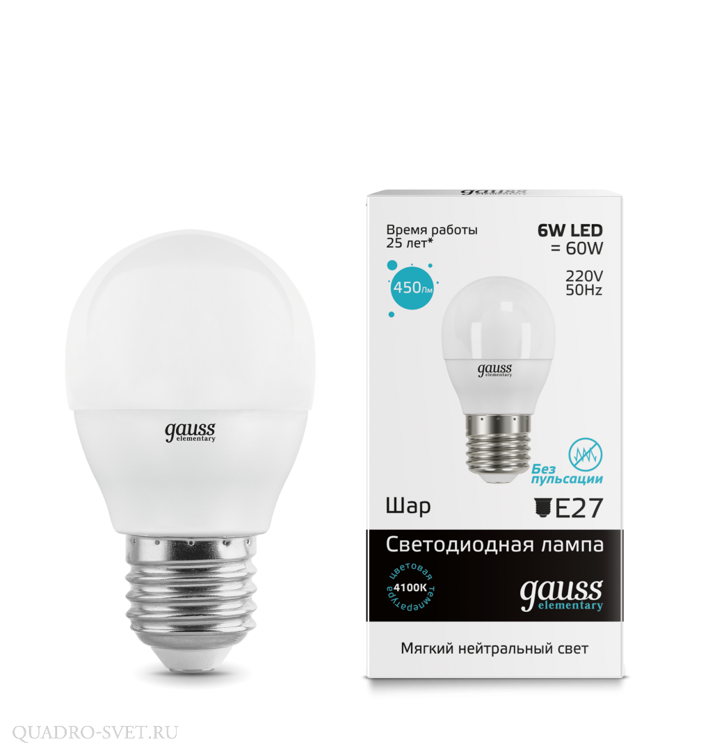 Оставить свой отзыв о товаре Лампа LED Gauss Шар 6 Вт E27 4100K 220В 53226