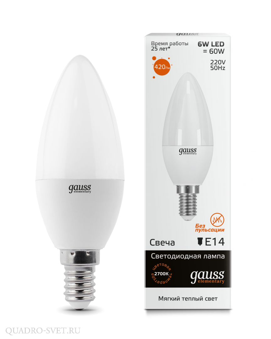 Оставить свой отзыв о товаре Лампа LED Gauss Свеча 6 Вт E14 2700K 220В 33116