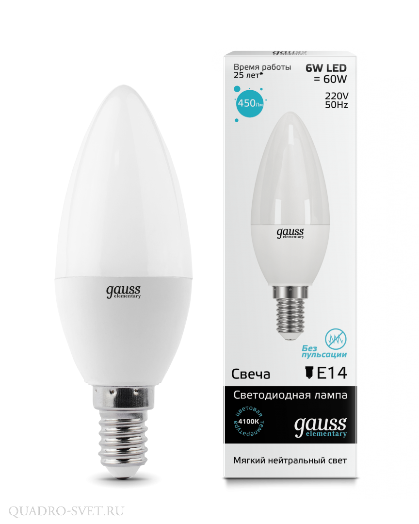 Оставить свой отзыв о товаре Лампа LED Gauss Свеча 6 Вт E14 4100K 220В 33126