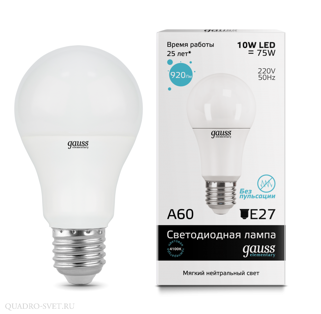 ЛОН 10Вт, 220В, тип цоколя E27, световой поток 920Лм, Цветовая температура 4100К
