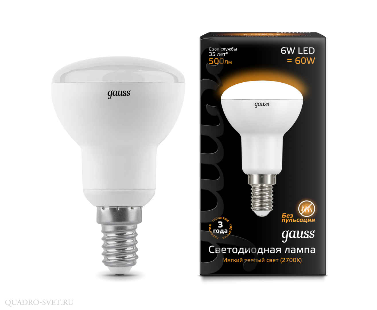 Оставить свой отзыв о товаре Лампа LED Gauss Рефлекторная 6 Вт E14 2700K 220В 106001106