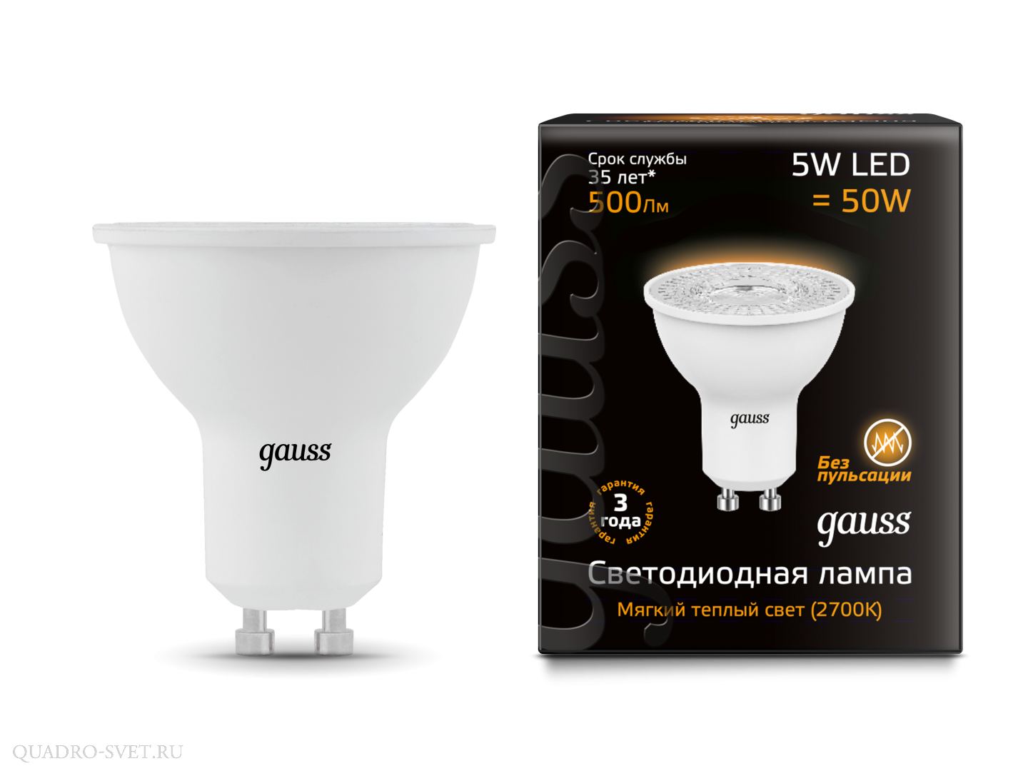 Оставить свой отзыв о товаре Лампа LED Gauss Софитная 5 Вт GU10 2700K 220В 101506105