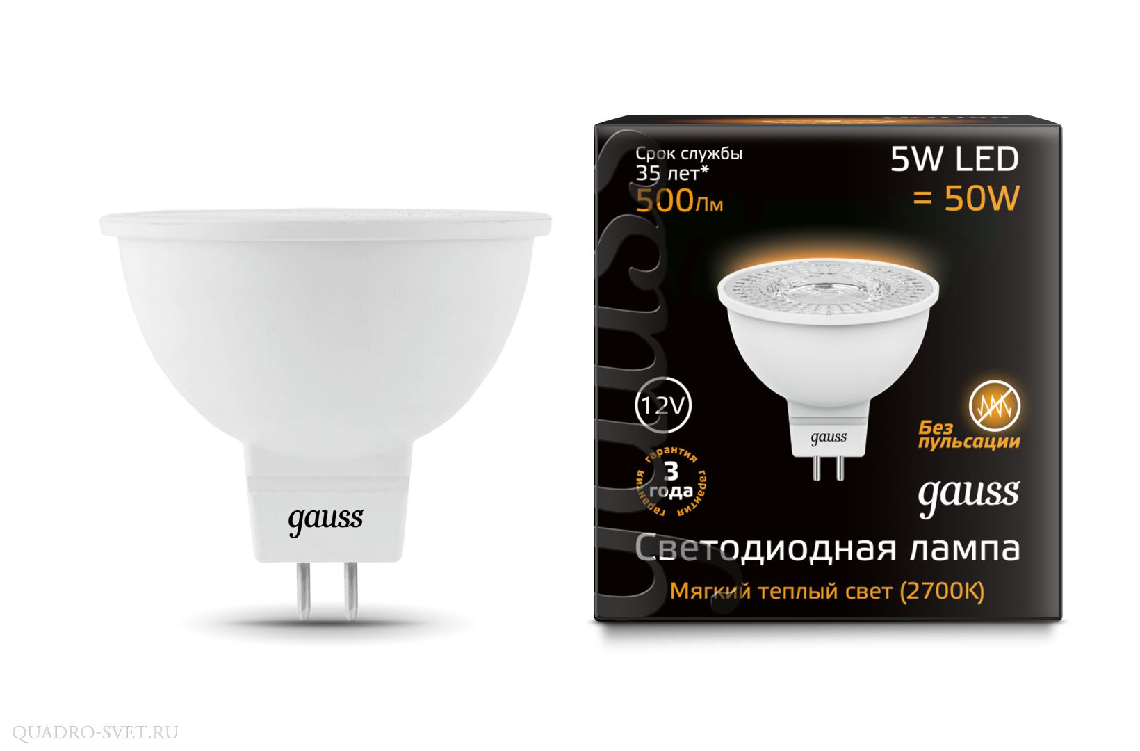 Оставить свой отзыв о товаре Лампа LED Gauss Софитная 5 Вт GU5.3 2700K 12В 201505105