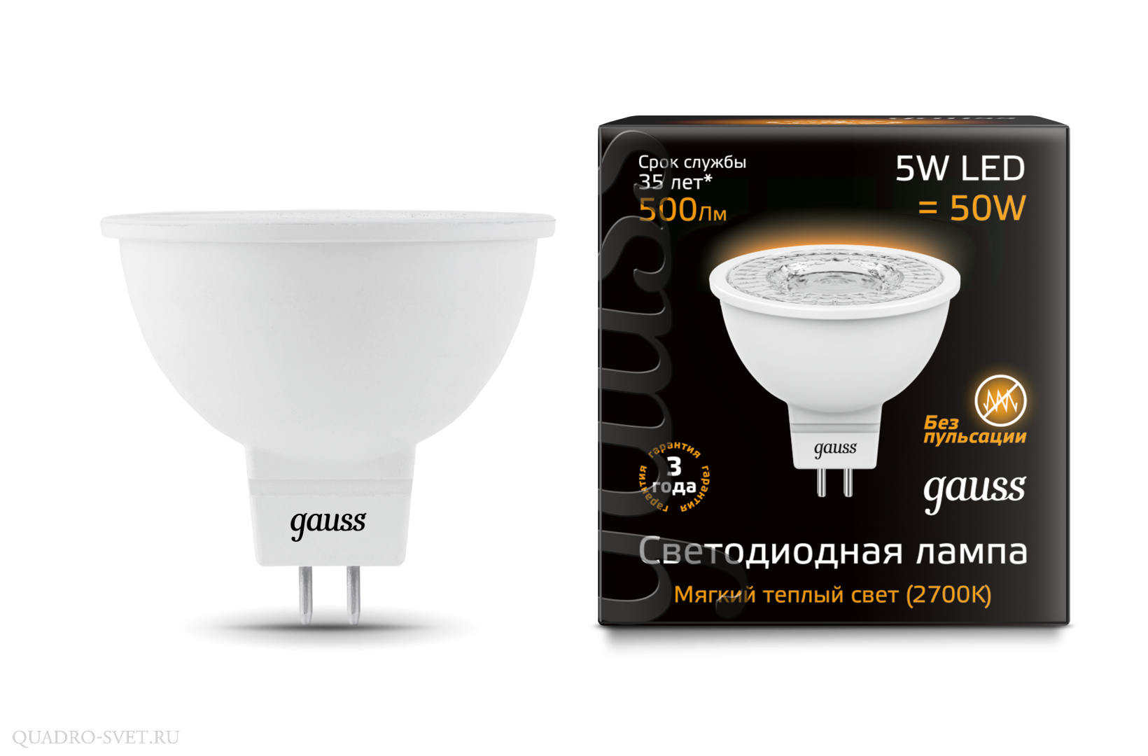 Оставить свой отзыв о товаре Лампа LED Gauss Софитная 5 Вт GU5.3 2700K 220В 101505105