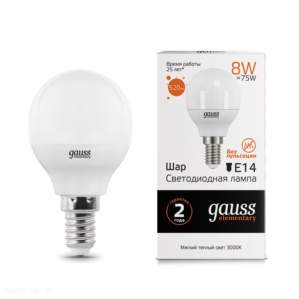 Оставить свой отзыв о товаре Лампа Gauss LED Elementary Globe 8W E14 3000K 53118