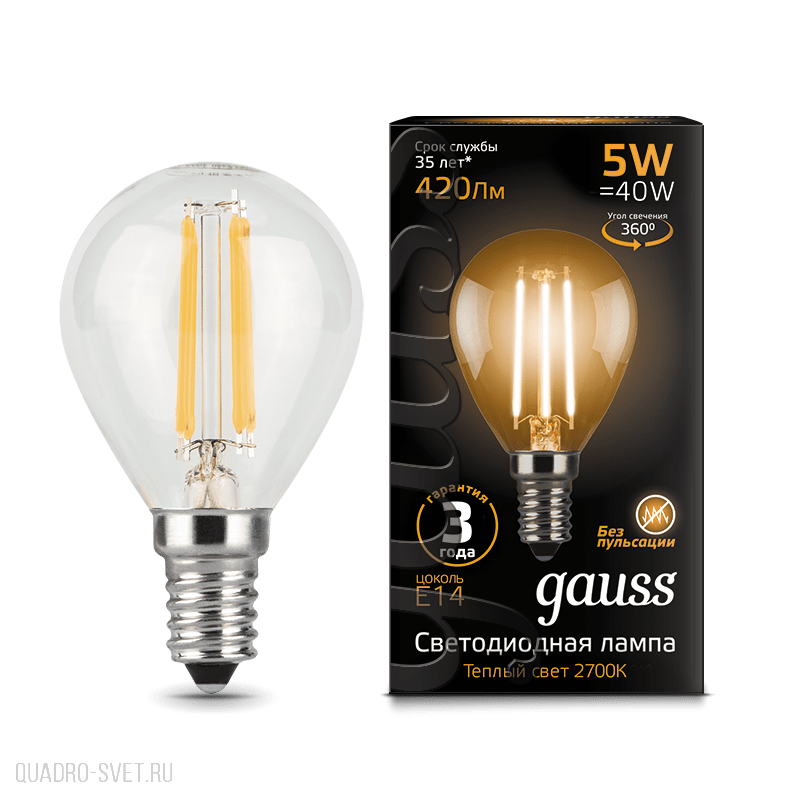 Оставить свой отзыв о товаре Лампа Gauss LED Filament Globe E14 5W 2700K 105801105