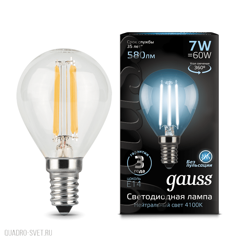 Оставить свой отзыв о товаре Лампа Gauss LED Filament Globe E14 7W 4100K 105801207
