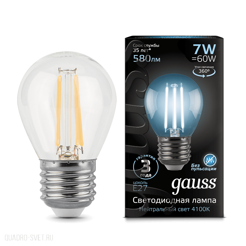 Оставить свой отзыв о товаре Лампа Gauss LED Filament Globe E27 7W 4100K 105802207