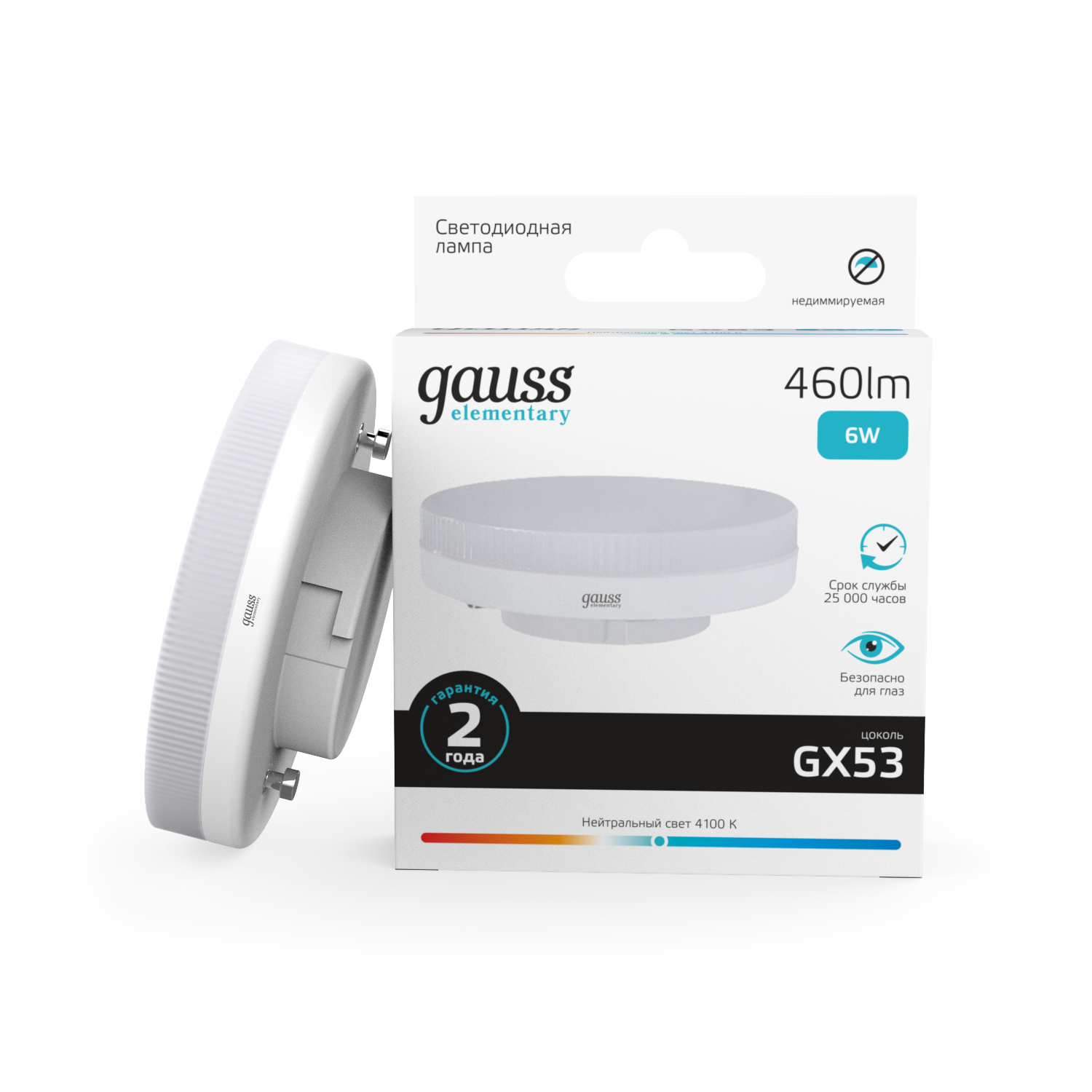 Оставить свой отзыв о товаре Лампа светодиодная Gauss Elementary 6Вт 460Лм 4100К GX53 83826