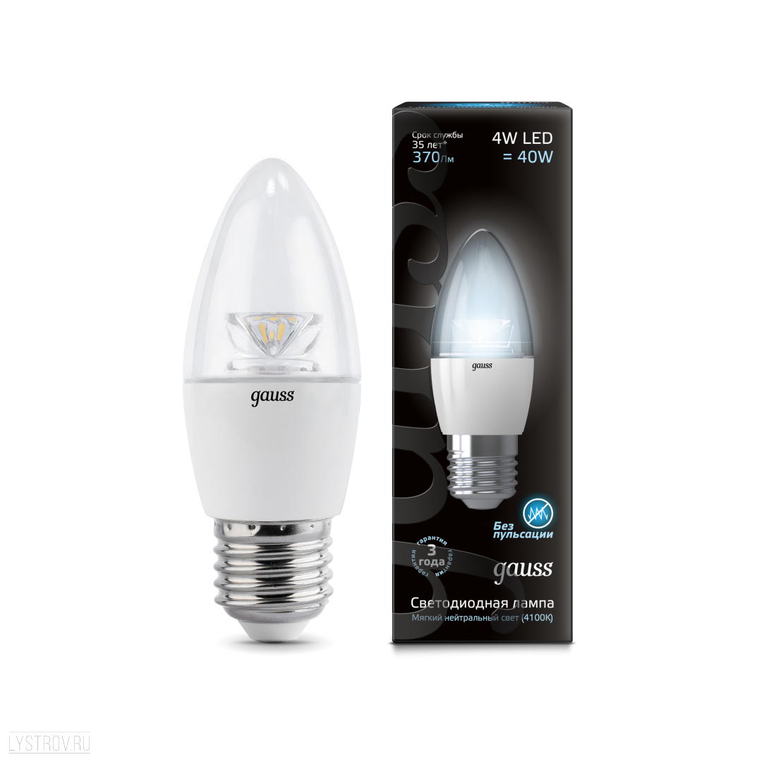 Оставить свой отзыв о товаре Лампа GAUSS светодиодная cвеча E27 4W 4100К