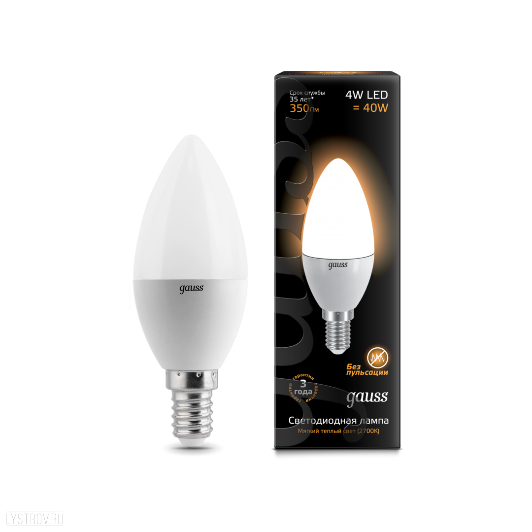 Оставить свой отзыв о товаре Лампа GAUSS светодиодная cвеча Е14 4W 2700К
