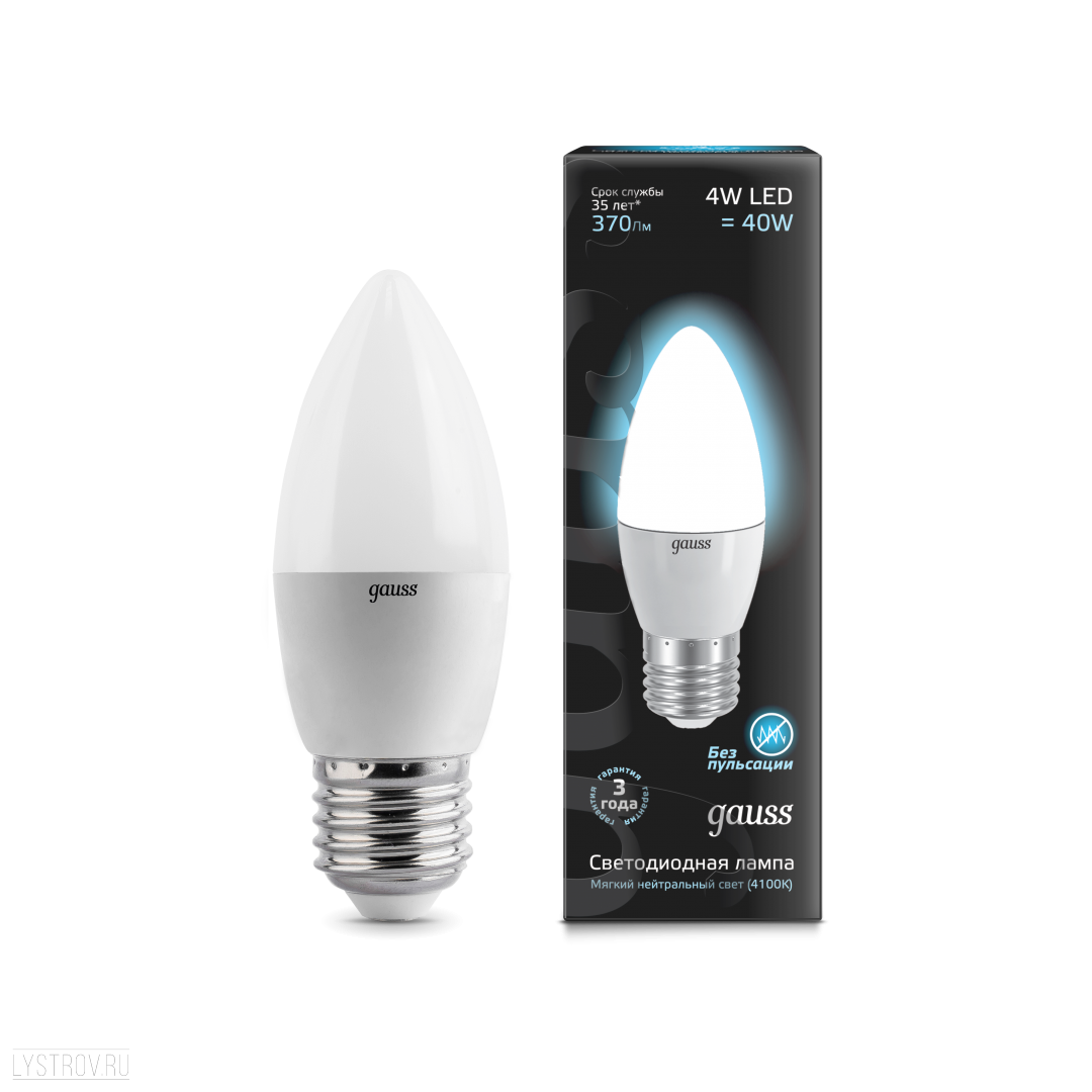 Лампа GAUSS светодиодная cвеча Е27 4W 4100К