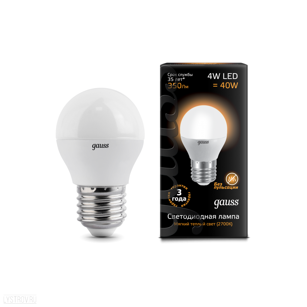 Оставить свой отзыв о товаре Лампа GAUSS светодиодная шар Е27 4W 2700К