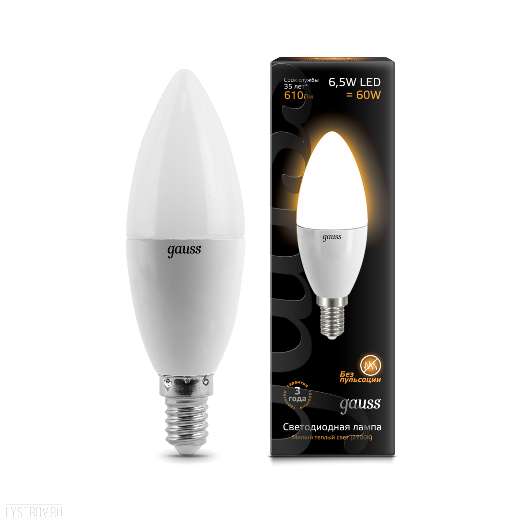 Оставить свой отзыв о товаре Лампа GAUSS светодиодная cвеча Е14 6,5W 2700К