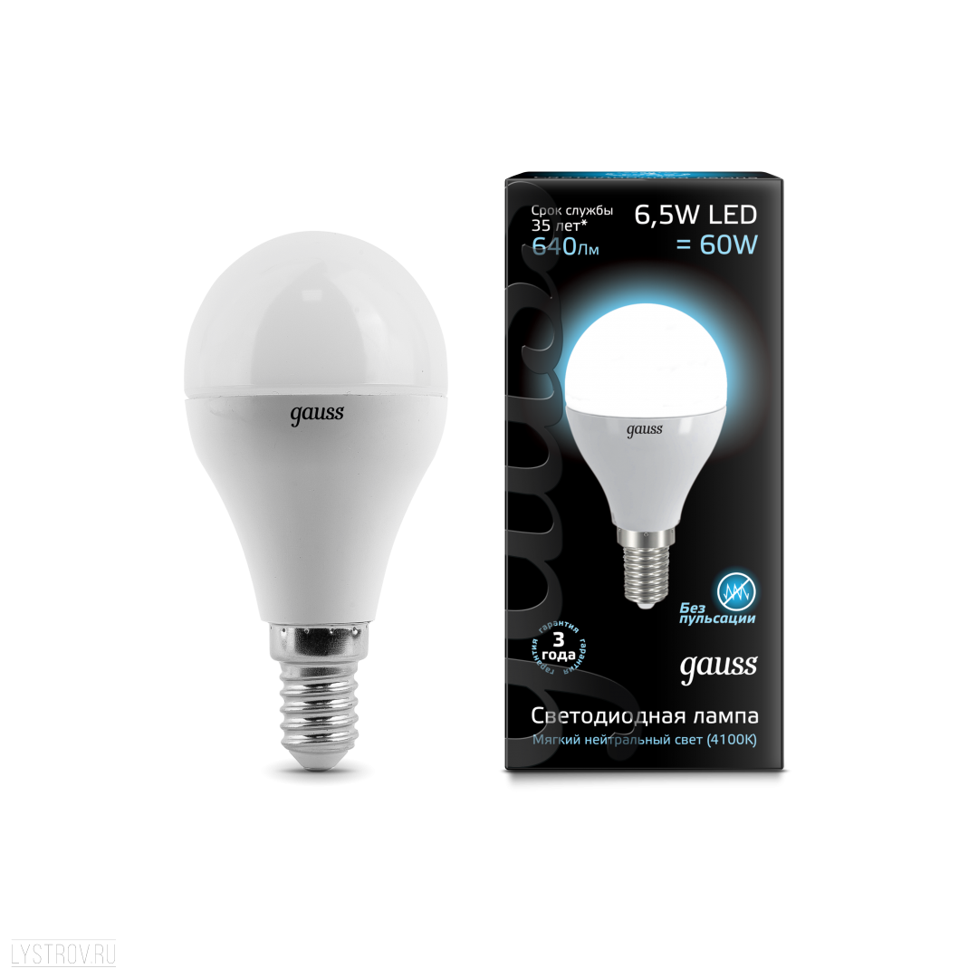 Оставить свой отзыв о товаре Лампа GAUSS светодиодная шар Е14 6,5W 4100К