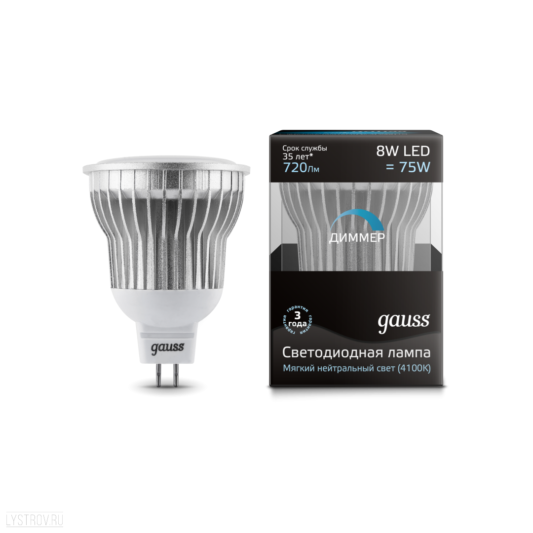 Лампа GAUSS светодиодная диммируемая софитная GU5.3 8W 4100К