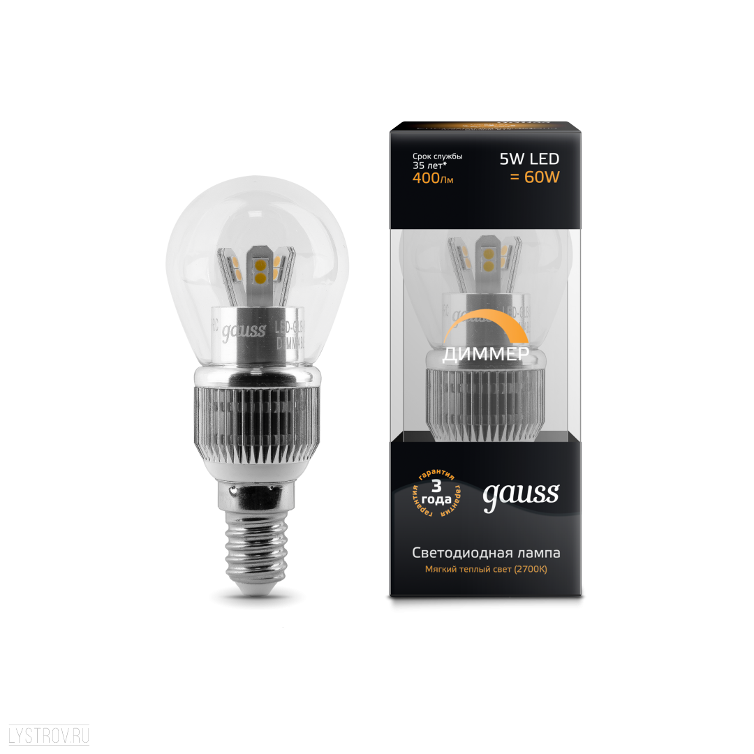 Оставить свой отзыв о товаре Лампа GAUSS светодиодная диммируемая шар Е14 5W 2700К