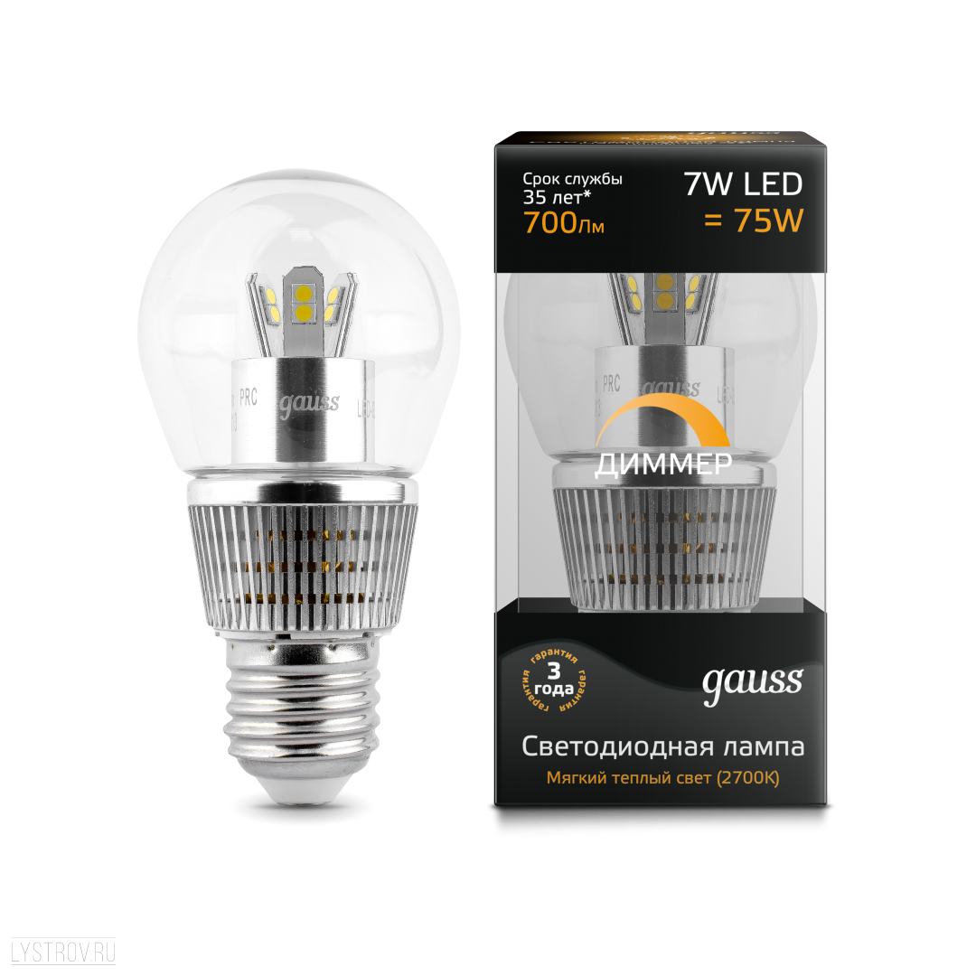 Оставить свой отзыв о товаре Лампа GAUSS светодиодная диммируемая шар Е27 7W 2700К