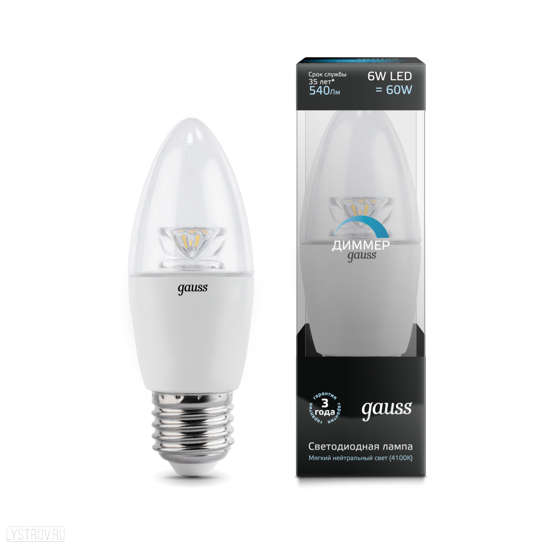 Оставить свой отзыв о товаре Лампа GAUSS светодиодная диммируемая свеча Е27 6W 4100К