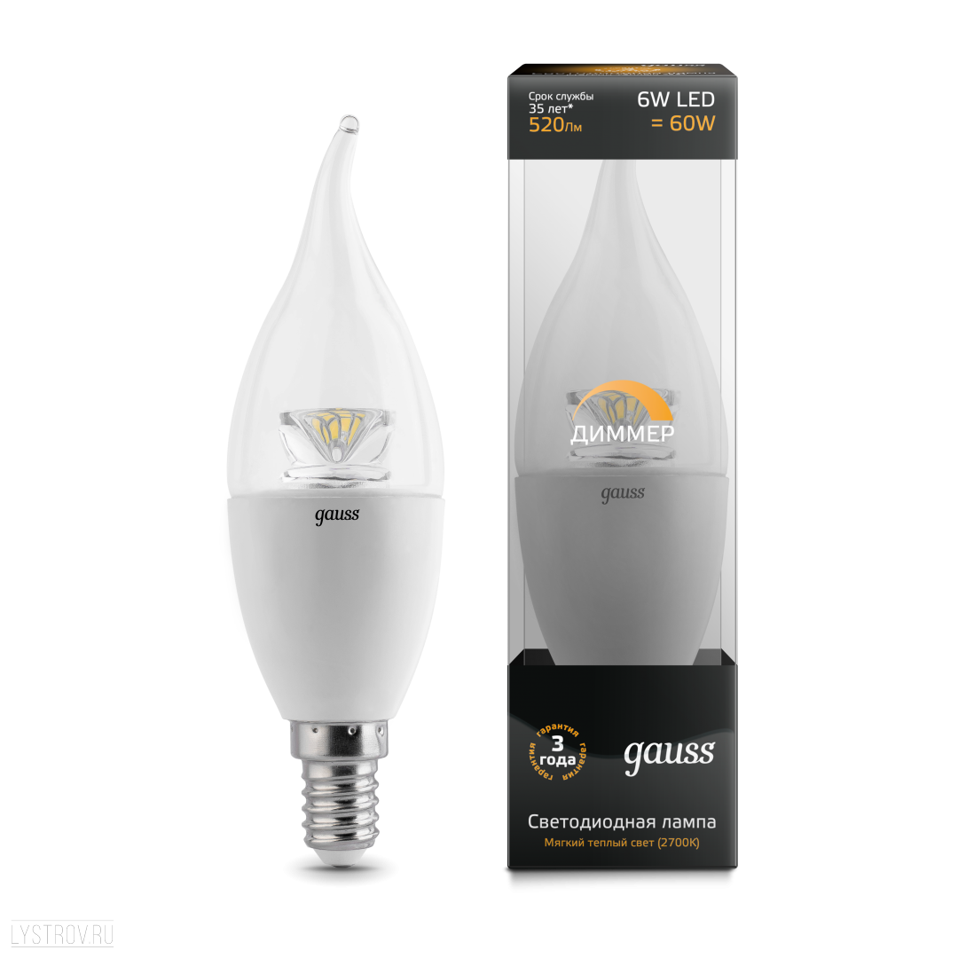 Оставить свой отзыв о товаре Лампа GAUSS светодиодная диммируемая свеча на ветру Е14 6W 2700К