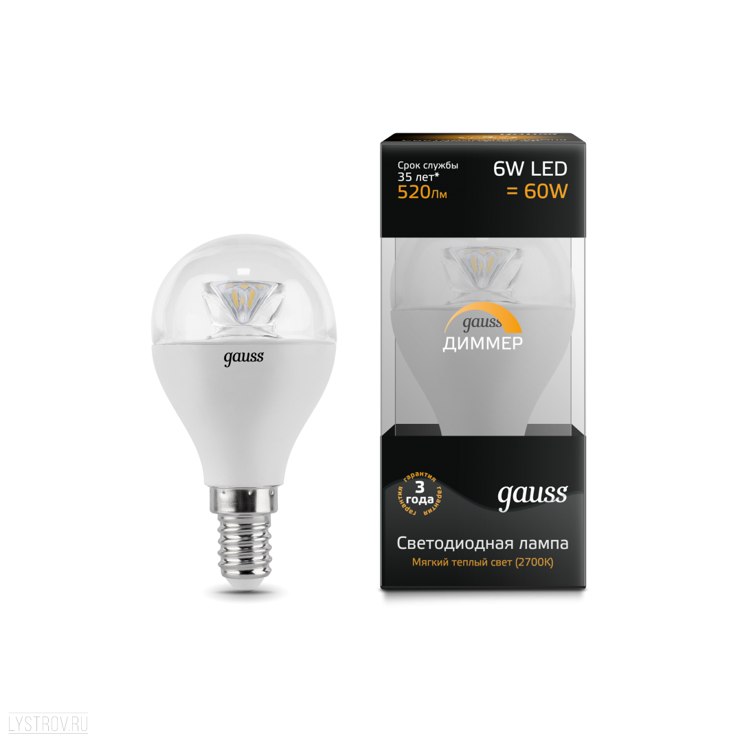 Оставить свой отзыв о товаре Лампа GAUSS светодиодная диммируемая шар Е14 6W 2700К