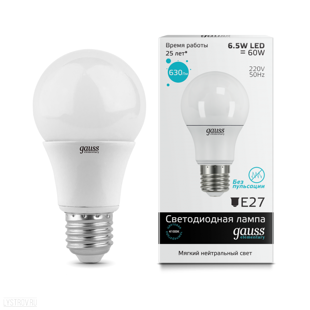 Оставить свой отзыв о товаре Лампа Gauss Elementary светодиодная шар E27 6,5W 4100K