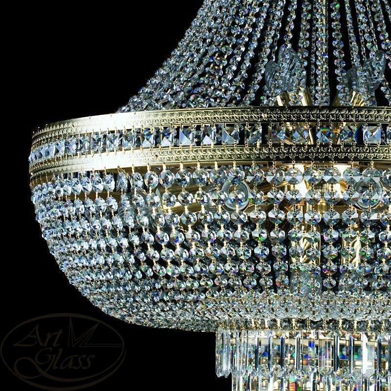Хрустальный светильник в форме корзины, размерами 80 х 90 см с 15 лампочками и с хрустальными подвесками Crystal Exclusive или Swarovski Spectra. Хрустальные элементы вместе с мягко блестящими металлическими деталями гарантируют высокий блеск этого изделия. Корзина подходит к всем типам интерьеров - классическим и современным, и прекрасно комбинируется с другими типами освещения - потолочными или настенными хрустальными светильниками, настольными лампами или торшерами.