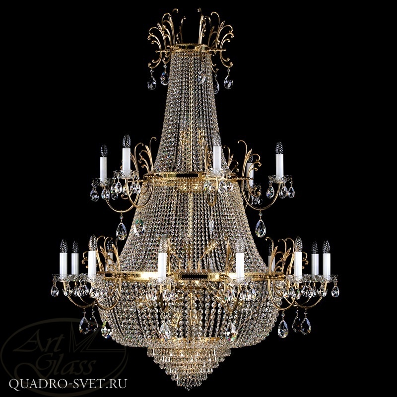 Хрустальный светильник в форме корзины, размерами 1,30 х 1,66 м с 33 лампочками и с хрустальными подвесками Crystal Exclusive или Swarovski Spectra. Хрустальные элементы вместе с мягко блестящими металлическими деталями гарантируют высокий блеск этого изделия. Корзина подходит к всем типам интерьеров - классическим и современным, и прекрасно комбинируется с другими типами освещения - потолочными или настенными хрустальными светильниками, настольными лампами или торшерами.