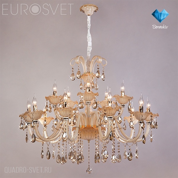 Большая люстра 124/10+5 Strotskis от производителя Bogate's (КНР) из коллекции Albertina исполнена в классическом стиле. Арматура светильника выполнена из