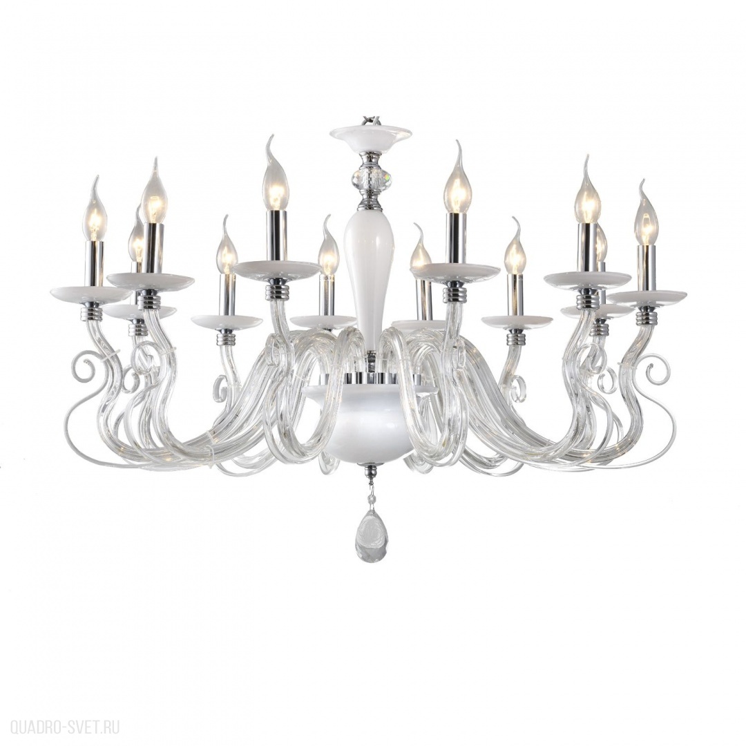 металла и стекла белого цвета. Поверхность арматуры глянцевая. Плафон отсутствует. Осветительный прибор рассчитан на освещение пространства площадью 24 кв. м. Тип цоколя используемых ламп E14. Производитель рекомендует использовать лампы мощностью не более 40 Вт. Суммарная мощность светильника составляет 480 Вт. Лампочки в комплект не входят. Защита от попадания влаги и пыли внутрь изделия не предусмотрена. Рекомендуем к применению в гостиной, кабинете, спальне.