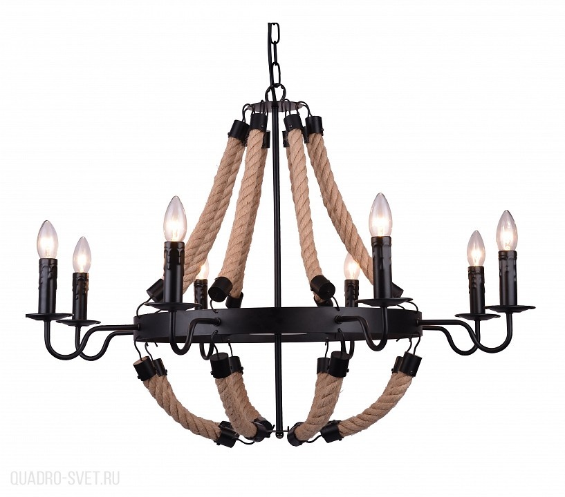 Большая люстра A8956LM-8BK итальянского производителя Arte Lamp из коллекции Marsiglia выполнена в стиле кантри. Арматура светильника выполнена из крашенного металла и веревки коричневого и черного цветов. Поверхность арматуры матовая. Плафон отсутствует. Осветительный прибор рассчитан на освещение пространства площадью 16 кв. м. Тип цоколя используемых ламп E14. Производитель рекомендует использовать лампы мощностью не более 40 Вт. Суммарная мощность светильника составляет 320 Вт. Лампочки в комплект не входят. Защита от попадания влаги и пыли внутрь изделия не предусмотрена. Рекомендуем к применению в гостиной, кабинете, спальне.