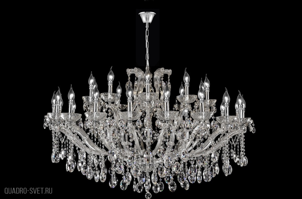 стекла и металла прозрачного и хромового цветов. Поверхность арматуры глянцевая. Плафон отсутствует. Декоративные элементы выполнены из прозрачного хрусталя. Осветительный прибор рассчитан на освещение пространства площадью 60 кв. м. Тип цоколя используемых ламп E14. Производитель рекомендует использовать лампы мощностью не более 40 Вт. Суммарная мощность светильника составляет 1200 Вт. Лампочки в комплект не входят. Защита от попадания влаги и пыли внутрь изделия не предусмотрена. Рекомендуем к применению в гостиной, спальне, прихожей, кабинете.