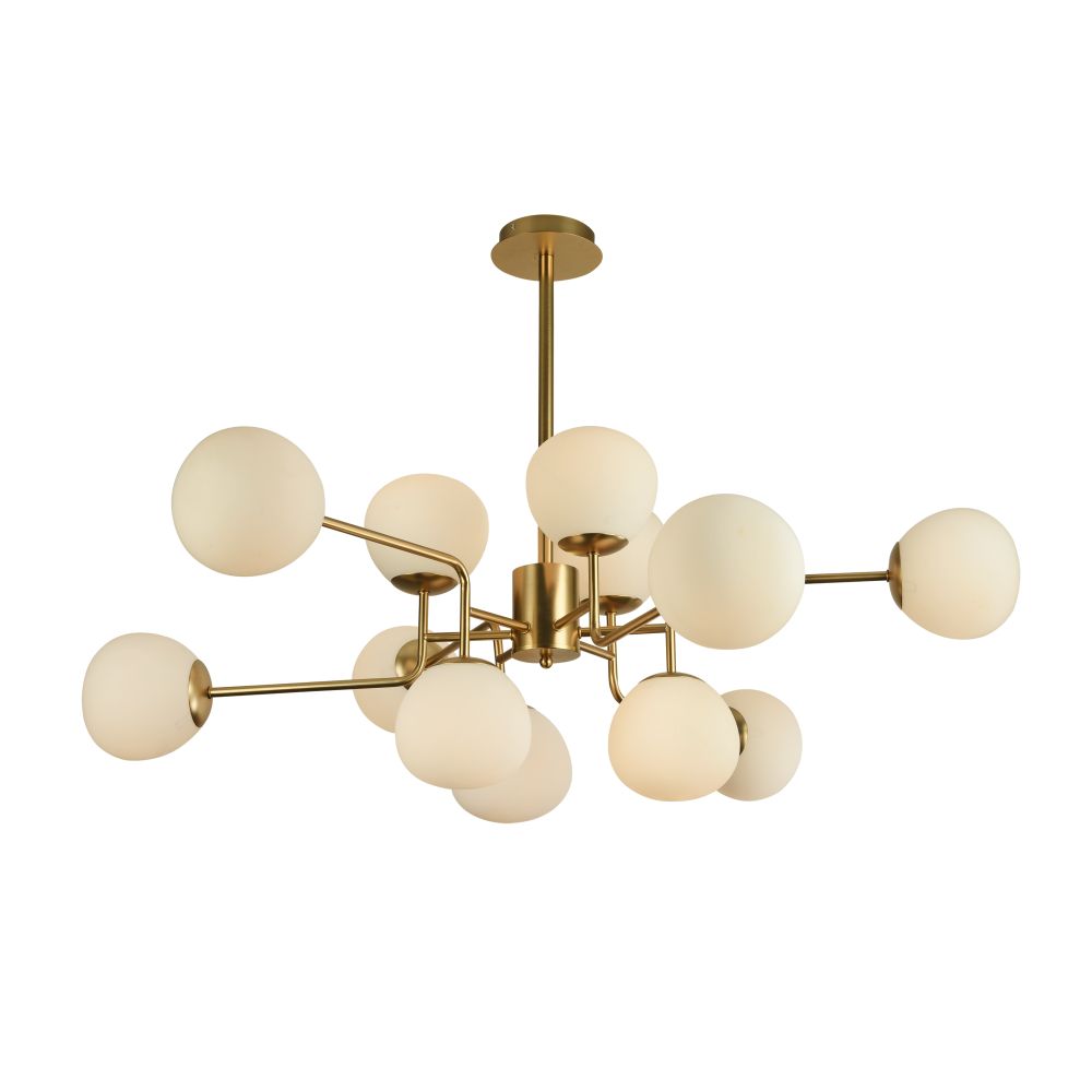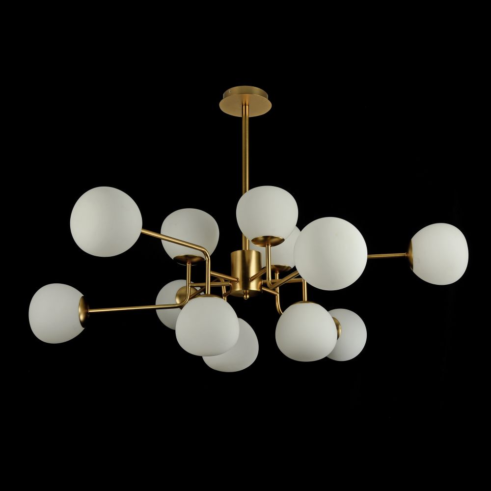 Большая люстра MOD221-PL-12-G производства Maytoni (Германия) из коллекции Erich выполнена в стиле модерн. Арматура светильника выполнена из металла золотого цвета. Поверхность арматуры глянцевая. Плафон изготовлен из стекла белого матового цвета, имеет сферическую форму и матовую поверхность. Направлен в стороны. Осветительный прибор рассчитан на освещение пространства площадью 24 кв. м. Тип цоколя используемых ламп E14. Производитель рекомендует использовать лампы мощностью не более 40 Вт. Суммарная мощность светильника составляет 480 Вт. Лампочки в комплект не входят. Защита от попадания влаги и пыли внутрь изделия не предусмотрена. Рекомендуем к применению в гостиной, кабинете, спальне.