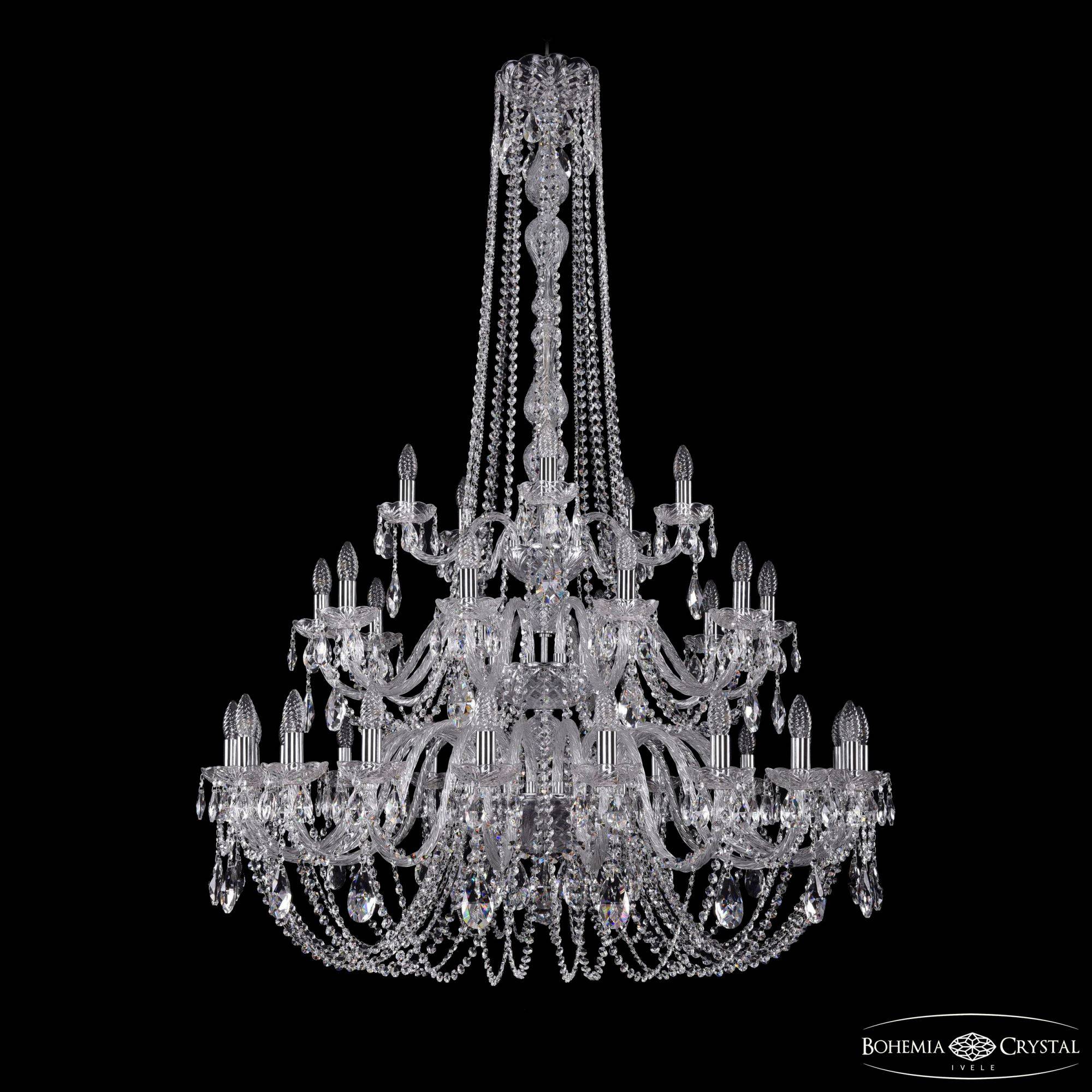 Большая хрустальная люстра Bohemia IVELE Crystal 1402/20+10+5/400/h-158/3d Ni