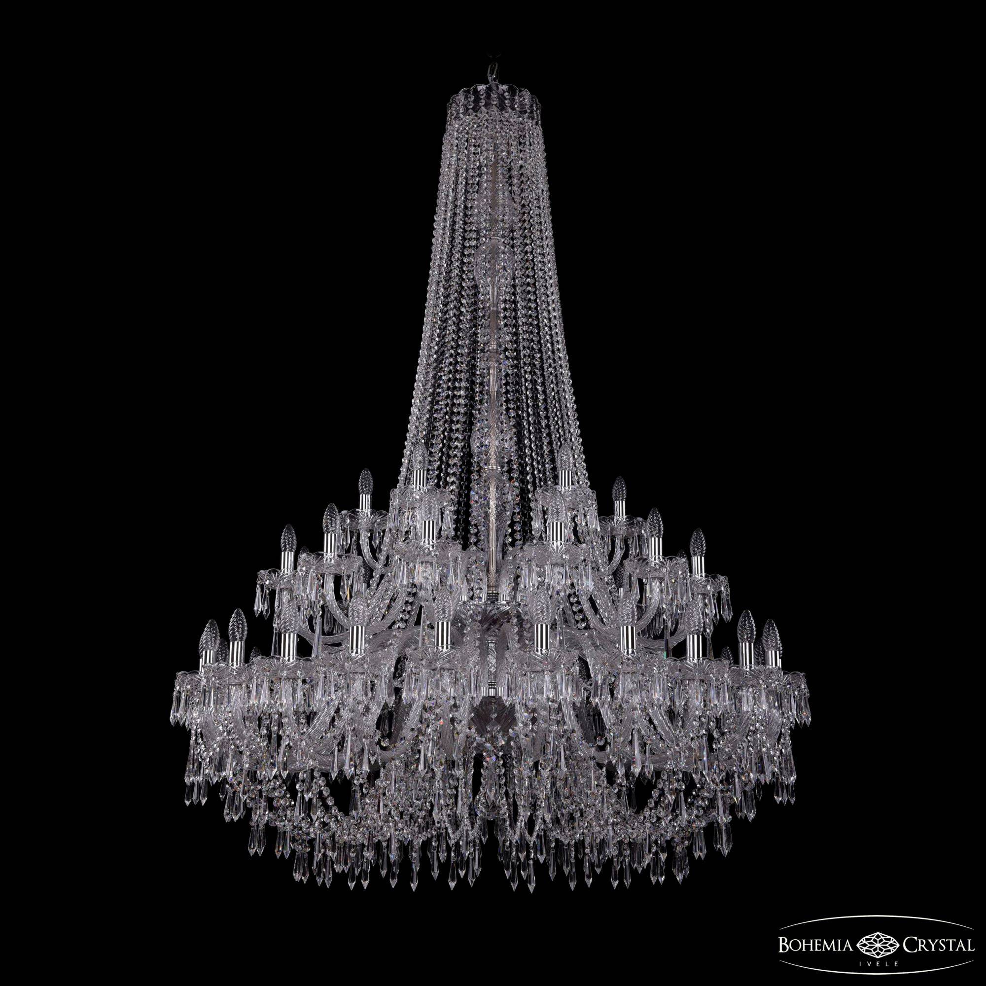 Большая хрустальная люстра Bohemia IVELE Crystal 1403/24+12+6/460/h-177/2d Ni
