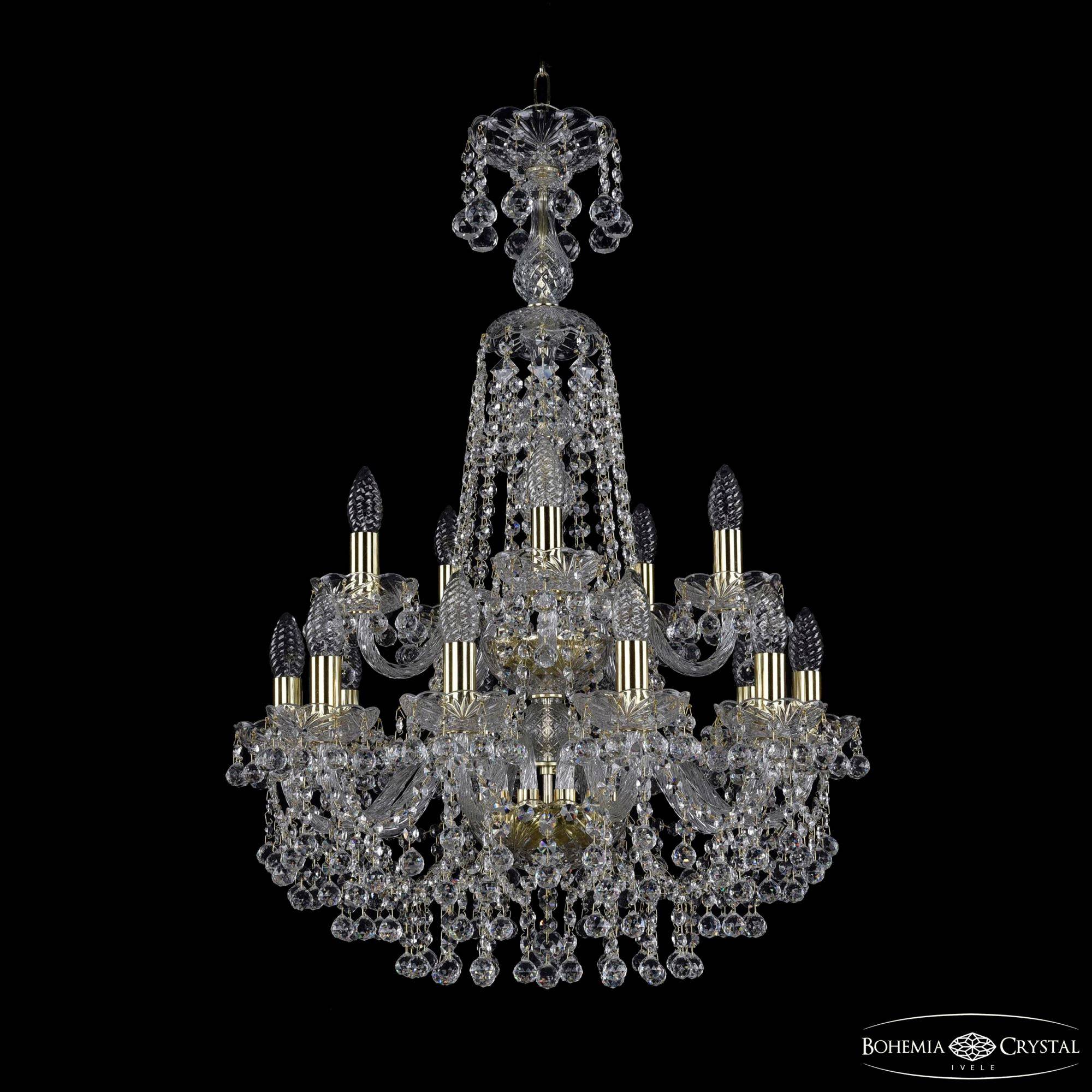 Большая хрустальная люстра Bohemia IVELE Crystal 1409/10+5/195/XL-83/2d G